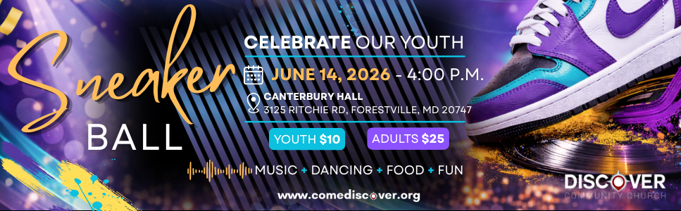 The DCC Discover U Sneaker Ball will be held on June 14, 2026, at Canterbury Hall (3125 Ritchie Rd, Forestville, MD 20747) from 4:00 p.m. - 7:00 p.m. Tickets are $25 for Adults and $10 for Youth 18 & Under.
